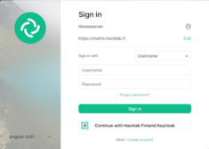 Hacklab.fi-kattojärjestö ylläpitää Matrix-palvelinta, johon pystyt kirjautumaan jäsenrekisterin tunnuksilla (SSO/Keycloak).