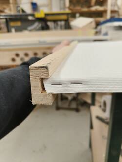 Because of the rim design, the fabrics had to be prepared before gluing, sanding and finishing. This was a big design mistake.