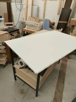 To cut down on the work, I decided to go for a table topper instead of a full table. Table topper is a board that sits on top of another full table, providing a new surface. I also approached the project as a learning opportunity, allowing for some mistakes so that I could deliver the result in time.