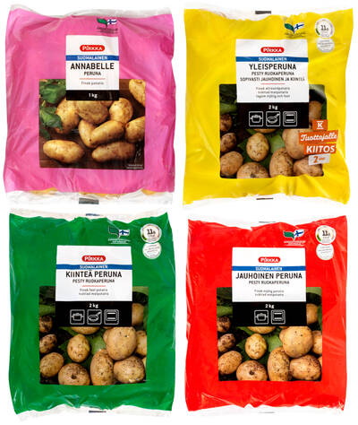 When people talk about the potato colors, they often mean the colors of the bags that the potatoes are packaged in, not the potatoes themselves.
