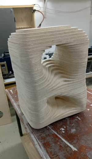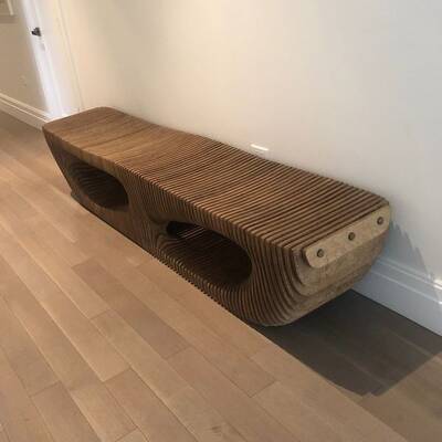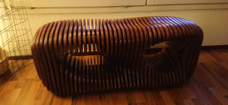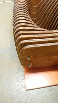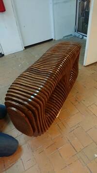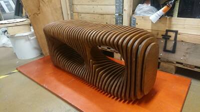Testailin itse myös eri paksuisia vanereita ja niiden välejä ja miltä ne tuntuisi. Penkin piti kuitenkin tuntua mukavalta istuttavalta. Päädyttiin lopulta 15 mm vanerilevyyn, koska se tuntui hyvältä.