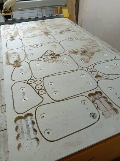 Fusion360 tehty työstömalli ja lopullinen palojen jyrsintä.