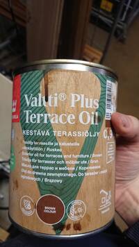 Olen yleensä tehnyt pohjamaalin itse pigmenteistä ja puuöljystä, mutta jostain syystä en saanut haluamaani tulosta millään. Päätinkin tämän vuoksi antaa mahdollisuuden kaupan hyllytavaralle. Sieltä sitten valikoitukin tämmöinen tuote kuin Valtti Plus Terrace Oil. Testailin sitä ihan ja tuote oli aivan loistava! Maali toi todella hyvin puun syyt esille, mitä olin just hakenut. Voin suositella muillekin. Tulen todennäköisesti käyttämään tuotetta myös muissa projekteissa.