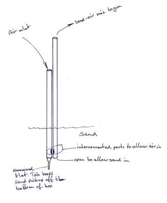- Sifooniputki, jonka avulla pistooli imee kaapin pohjalta hiekkaa.