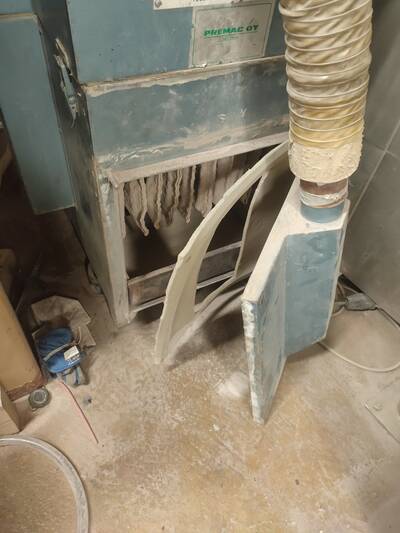 Hiekkapuhallus kaappiin on kytketty suodatinimuri, jota tulee käyttää puhalluksen aikana. Kyseinen laite imee ilmaa kaapin sisältä ja suodattaa siitä puhaluksessa syntyneen pölyn.
