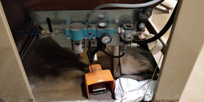 Kytke paineimajärjestelmä päälle ja avaa paineilma kytkin kaapin etupuolelta.